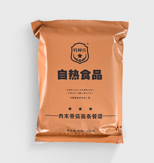 爽滑入口的白面條與營養(yǎng)豐富的肉末香菇,香氣撲鼻,營養(yǎng)均衡。搭配潤口美味的火腿與甜脆小黃瓜,不僅有營養(yǎng),而且十分下飯。高溫滅菌工藝,使其擁有常溫下超長的保質期(24個月)。簡單易操作,既可以注水后完成一刻鐘自加熱,也可微波加熱,無需明火,滿足速食時代“既便捷又營養(yǎng)健康”的追求。袋內附有餐盒餐具,不論是工作日的午餐,還是戶外運動、野外探險、應急搶險等多種場合,都可以讓你美餐一頓。